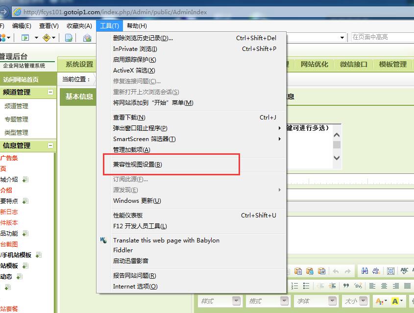 IE11瀏覽器打開后臺添加內容,編輯器無法從服務器端選擇上傳圖片,窗口無法關閉的解決辦法,添加兼容性視圖設置即可