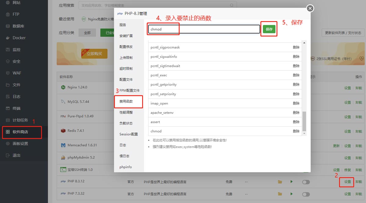 依次打開【軟件商店】-【已安裝】,找到需要配置的PHP版本,如下圖所示
