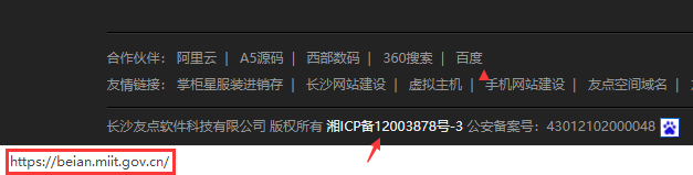 進入首頁,鼠標放在備案號上面,如果下面出來工信部的網址:https://beian.miit.gov.cn ,說明添加成功