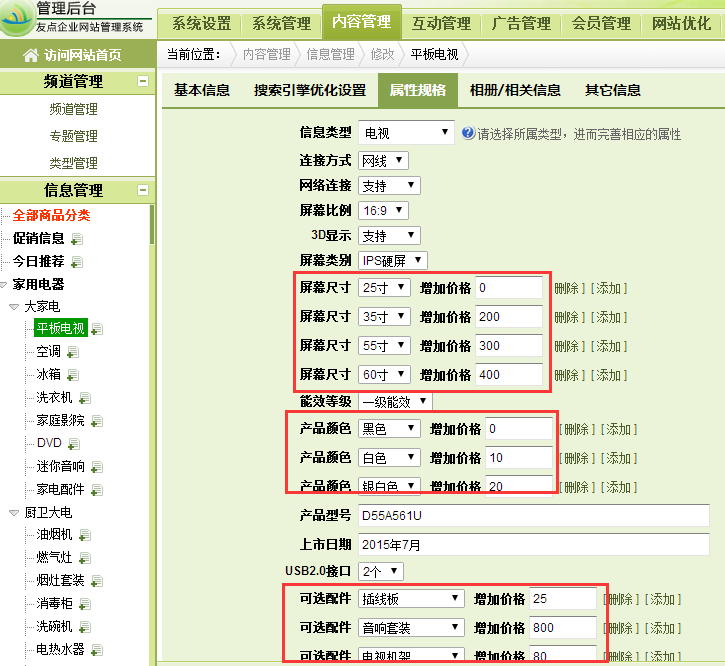 添加產(chǎn)品時(shí),在屬性規(guī)格欄目里可以讓不同的屬性設(shè)置不同的價(jià)格