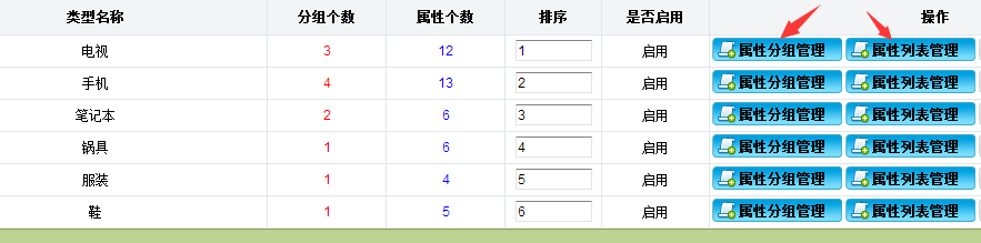 點(diǎn)擊屬性分組管理可添加屬性的分組: