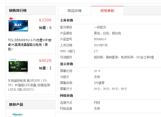 下圖為剛才對(duì)應(yīng)填寫的電視機(jī)屬性顯示: