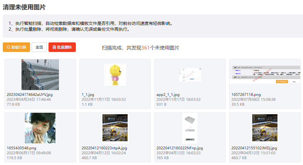 注意:刪除圖片不能恢復,請把網站備份好,再清理圖片